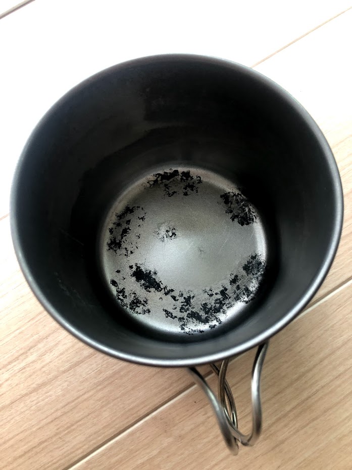 食材が不完全燃焼により炭化すると黒くなり、それがコッヘルの底にこびりついてしまったのです。