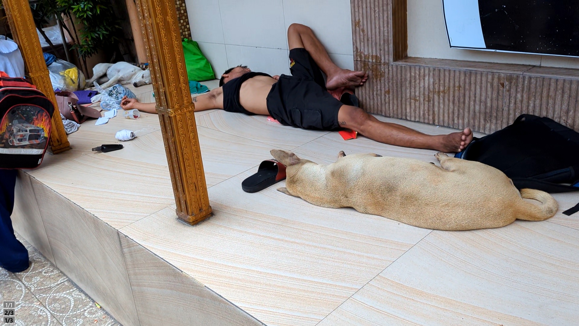 犬と一緒に道端で寝ている人たち。ずっと温かいからできるんだろうな。インドほどハチャメチャじゃありませんが、街で人と動物が一緒に暮らしています。