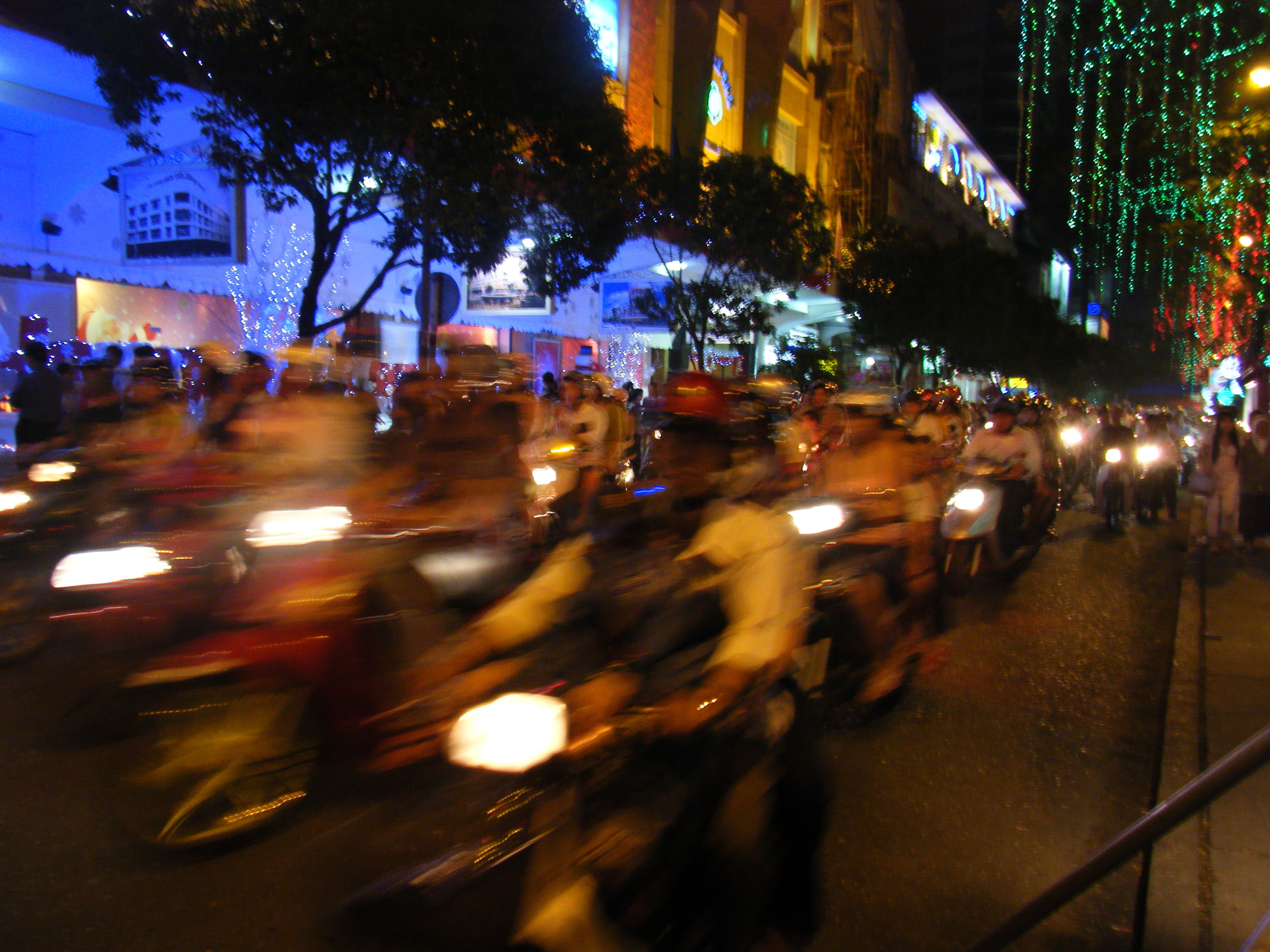 暑い国ですから、バイクに乗れば風を感じられて涼しいのでしょう。夜も家族4人で1台のバイクにまたがったりして、交通量は減りません。