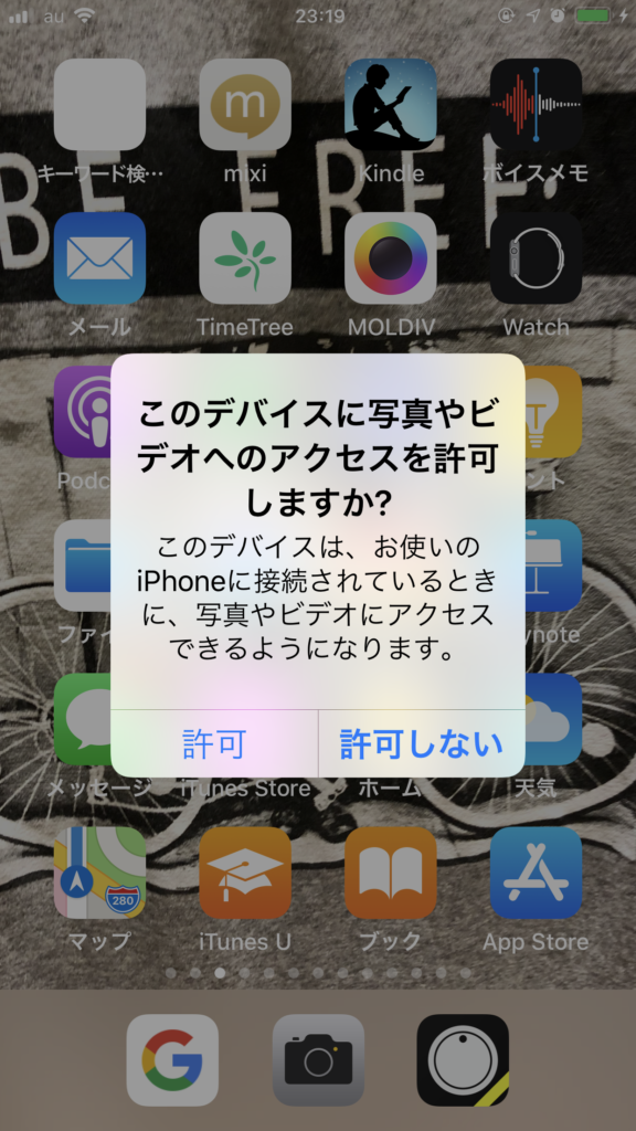 私の場合は②でした。しかもパソコンを「信頼」を選択したにも関わらず「画像とビデオのインポート」ができません。
