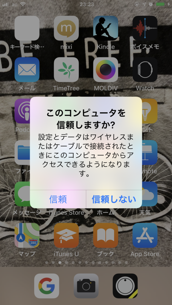 「信頼」を選んでiPhoneのパスワードを入力して、承認の儀式を完了させる。
