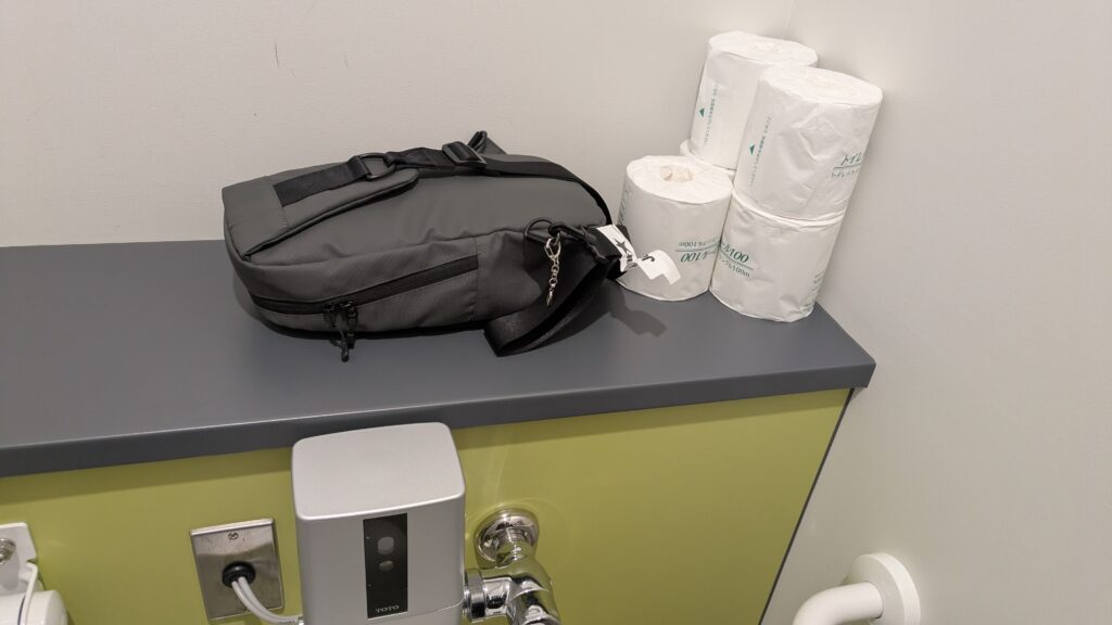 このカバンの持ち主は、海外では気を張っていたものの、帰国して、トイレでホッとした瞬間に、気が緩んでしまったのかもしれません。