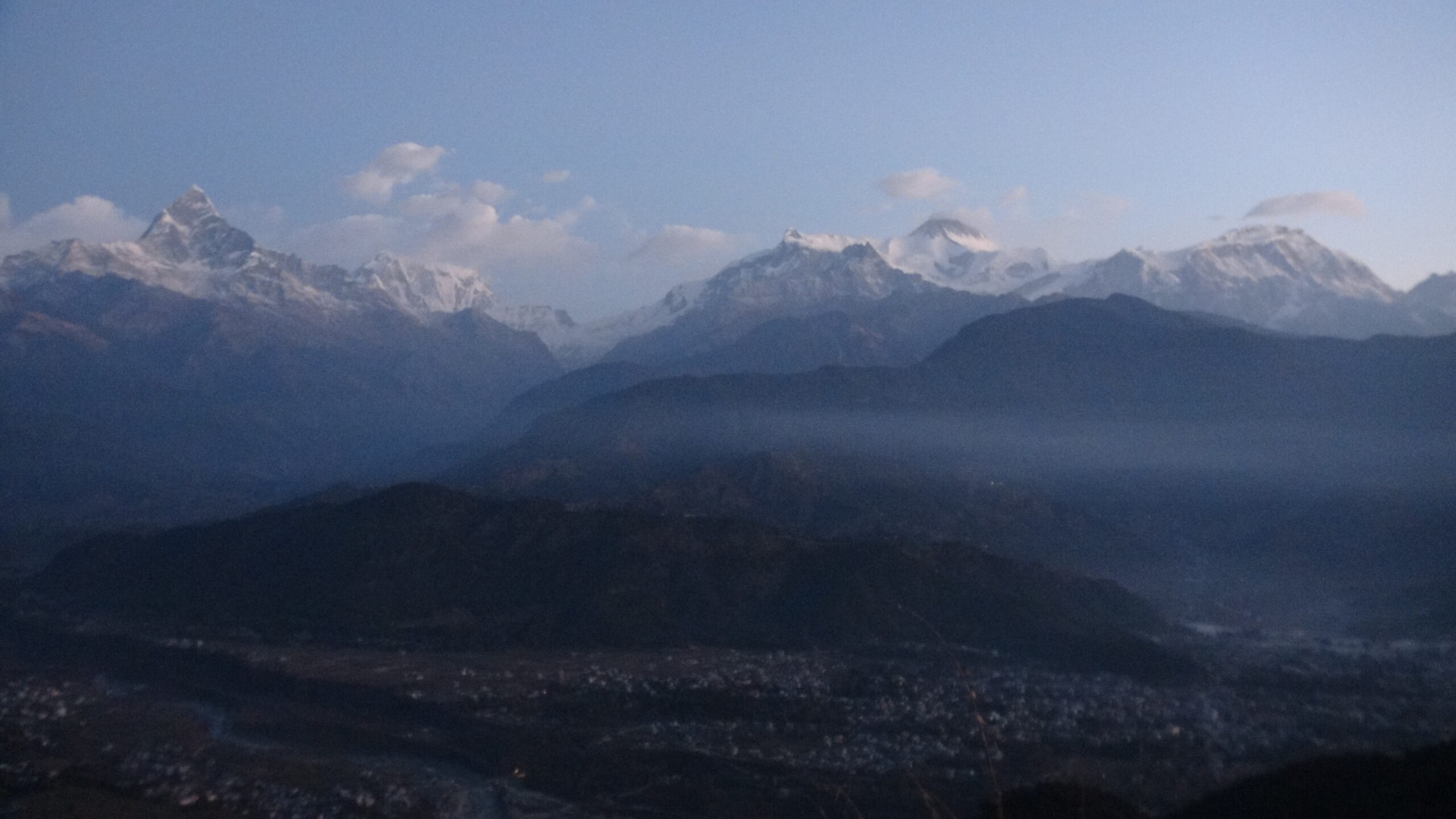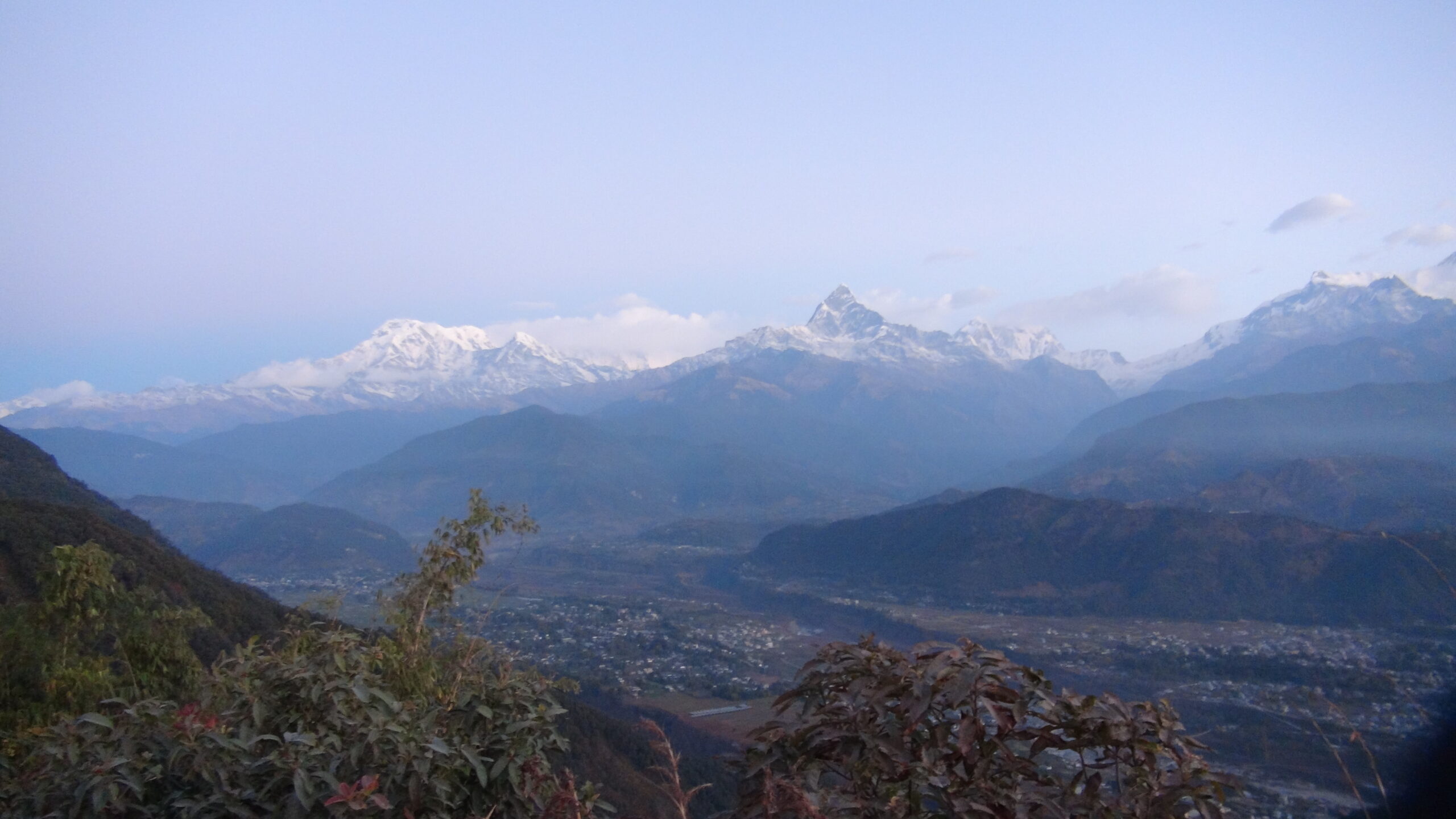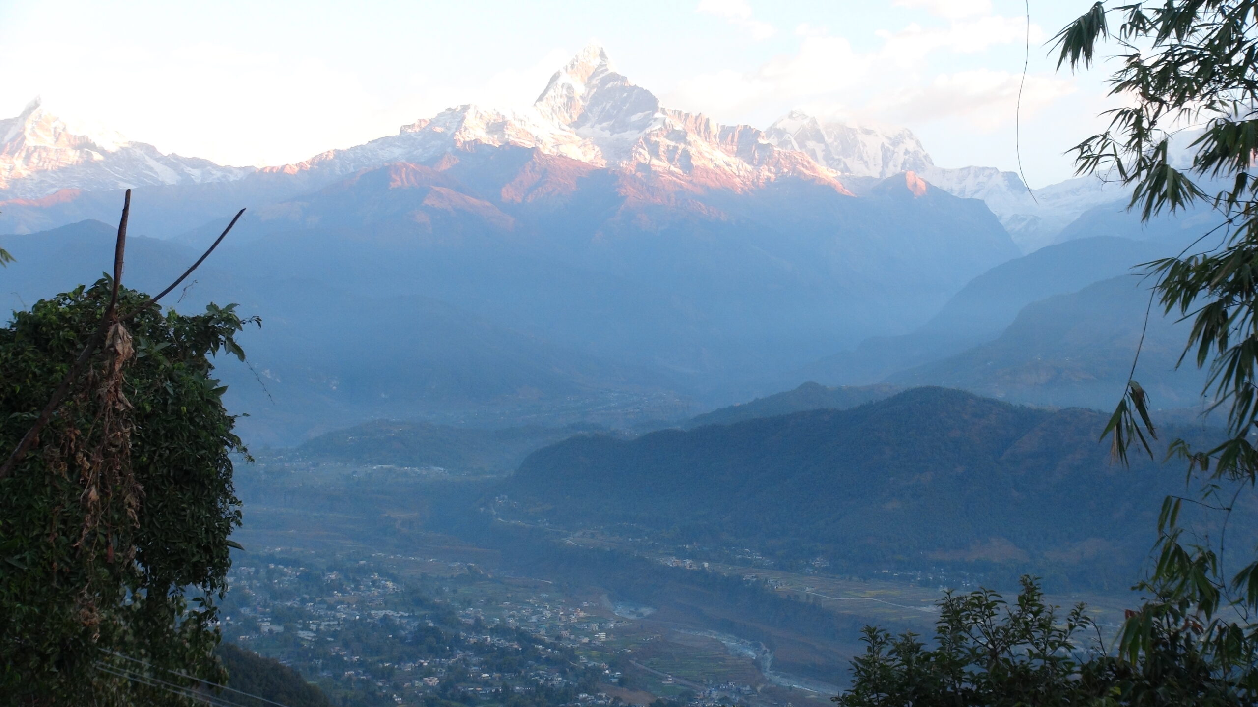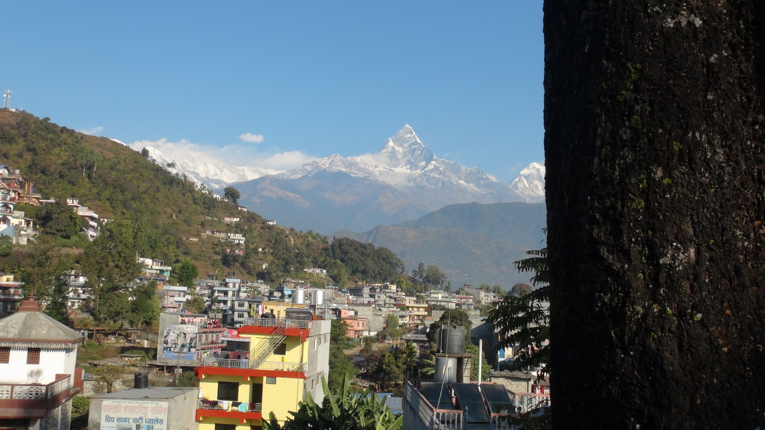 市街地の背景に突如現れたマチャプチャレ。本当に感動しました。富士山、アイガー北壁、そしてマチャプチャレは私の三大名山です。