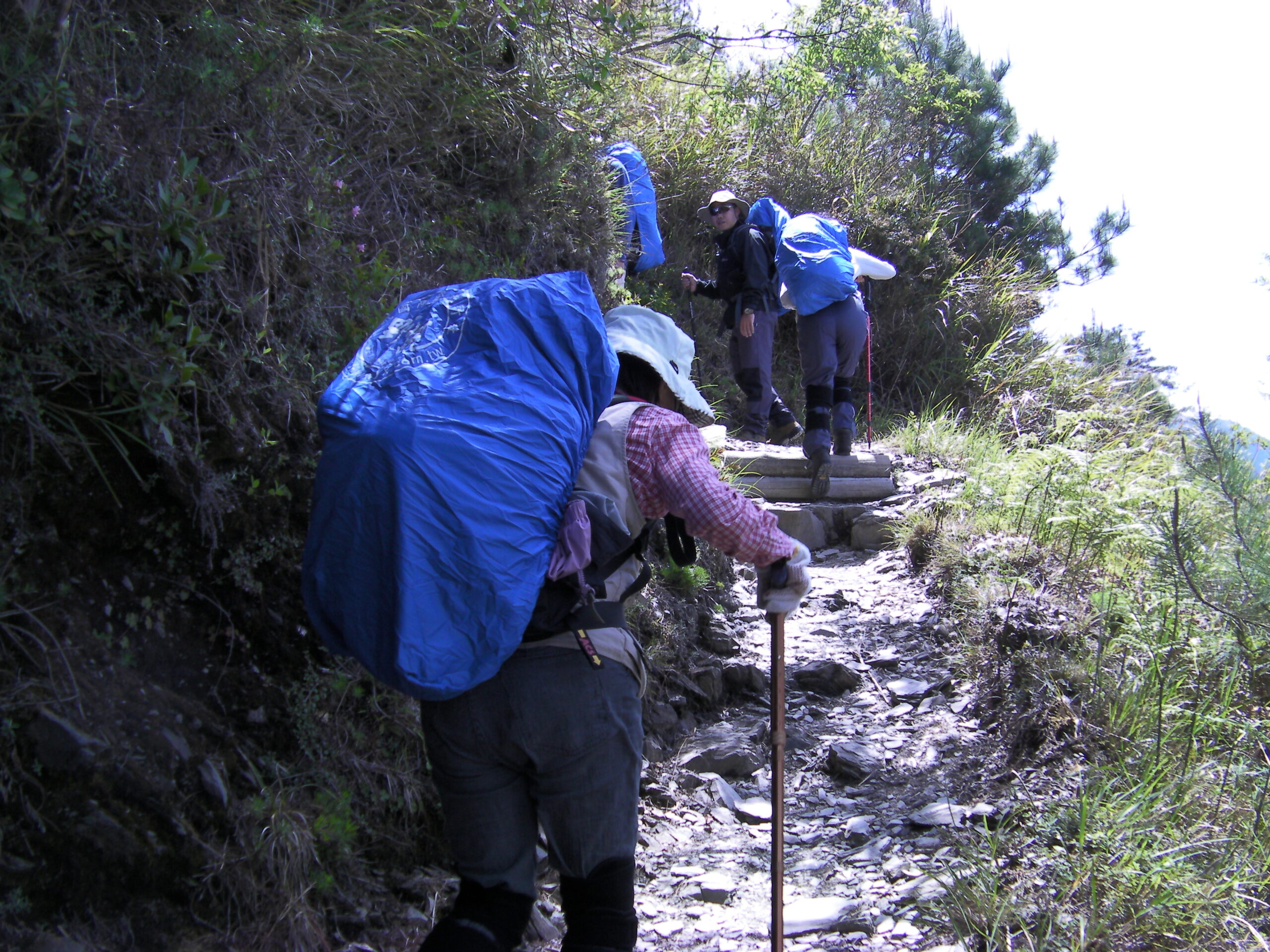 青いザックカバーは山岳ツアー会社からのプレゼントです。