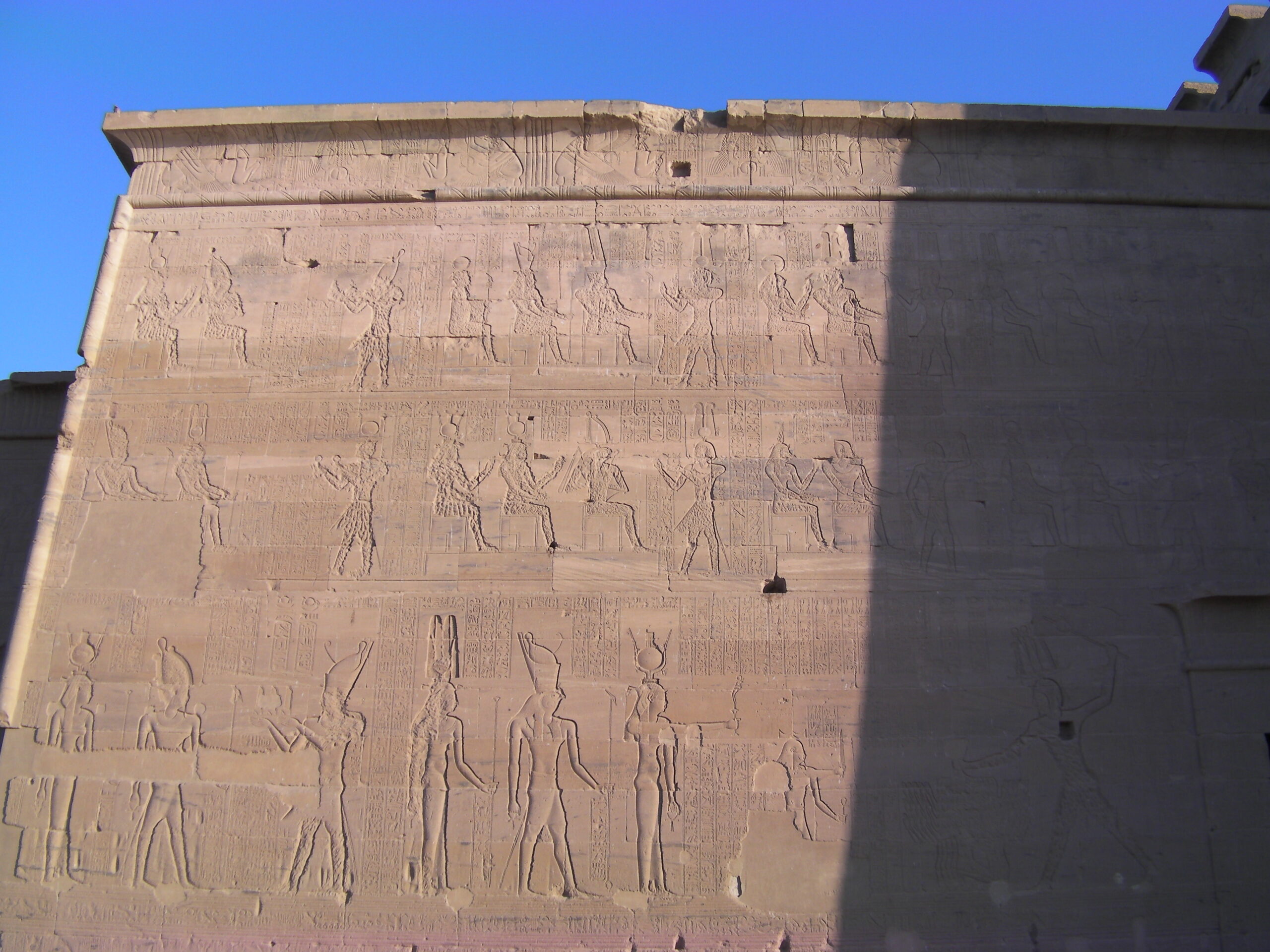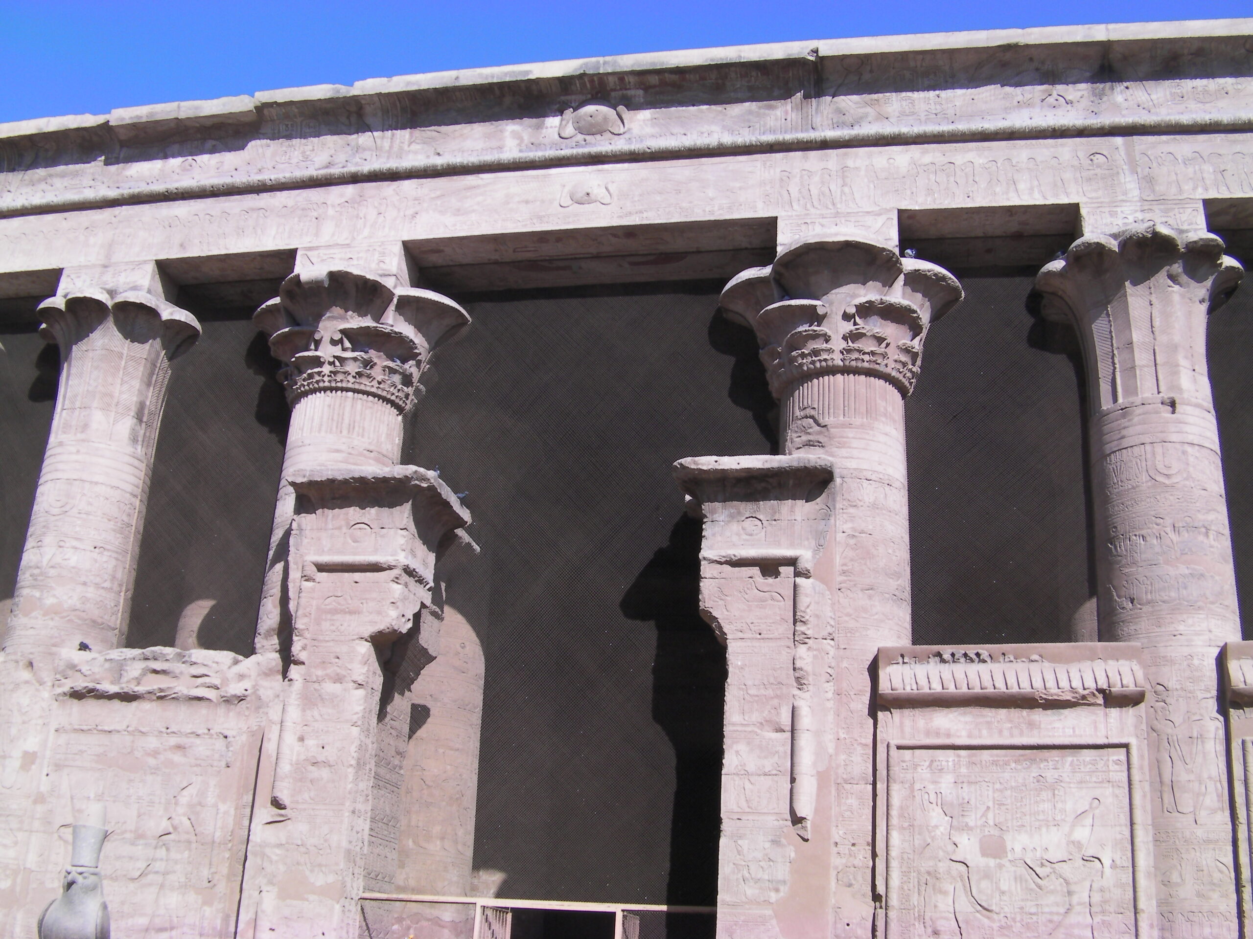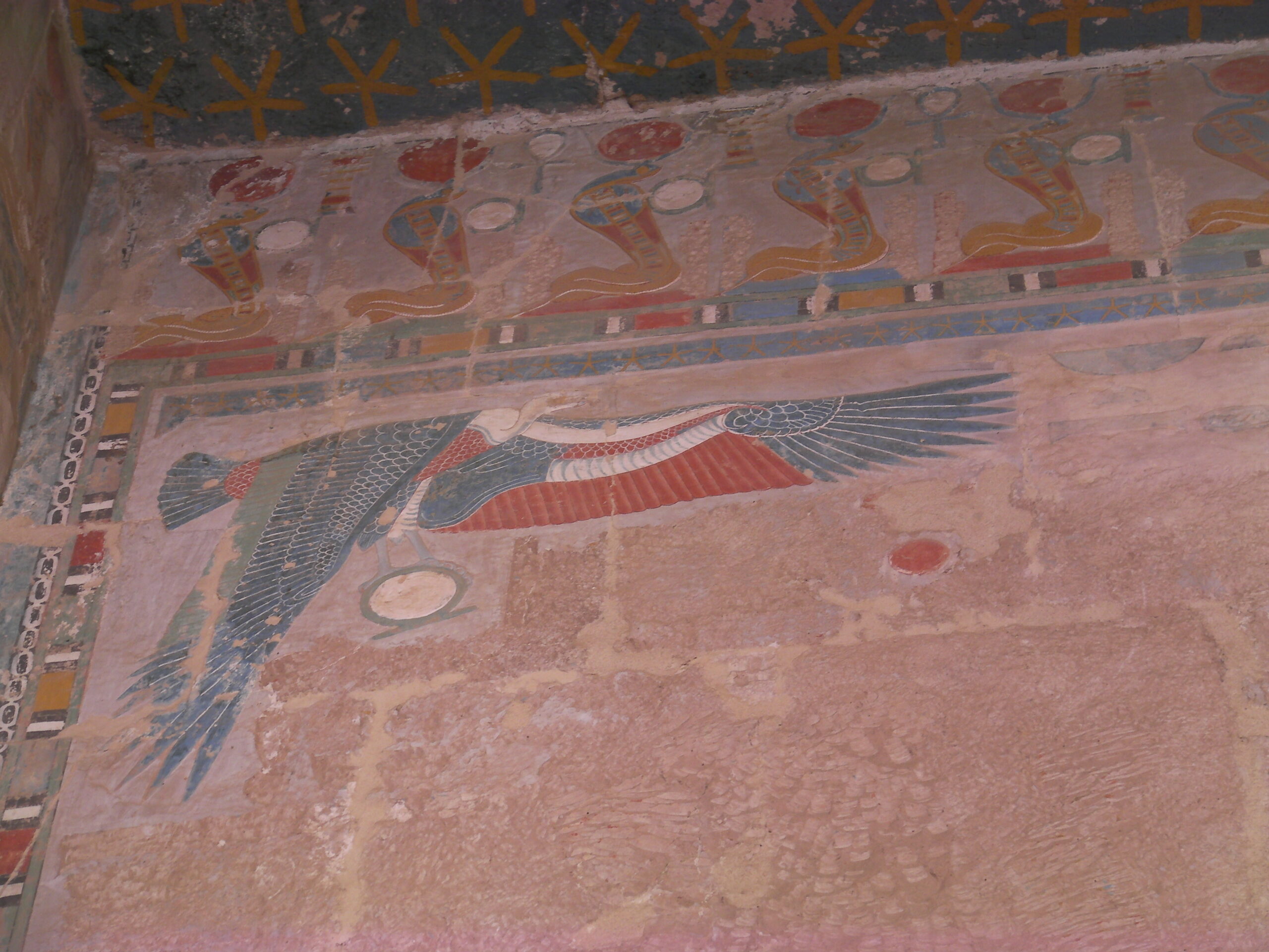 神殿の出来たてはフルカラーだった装飾。今も色が残る。