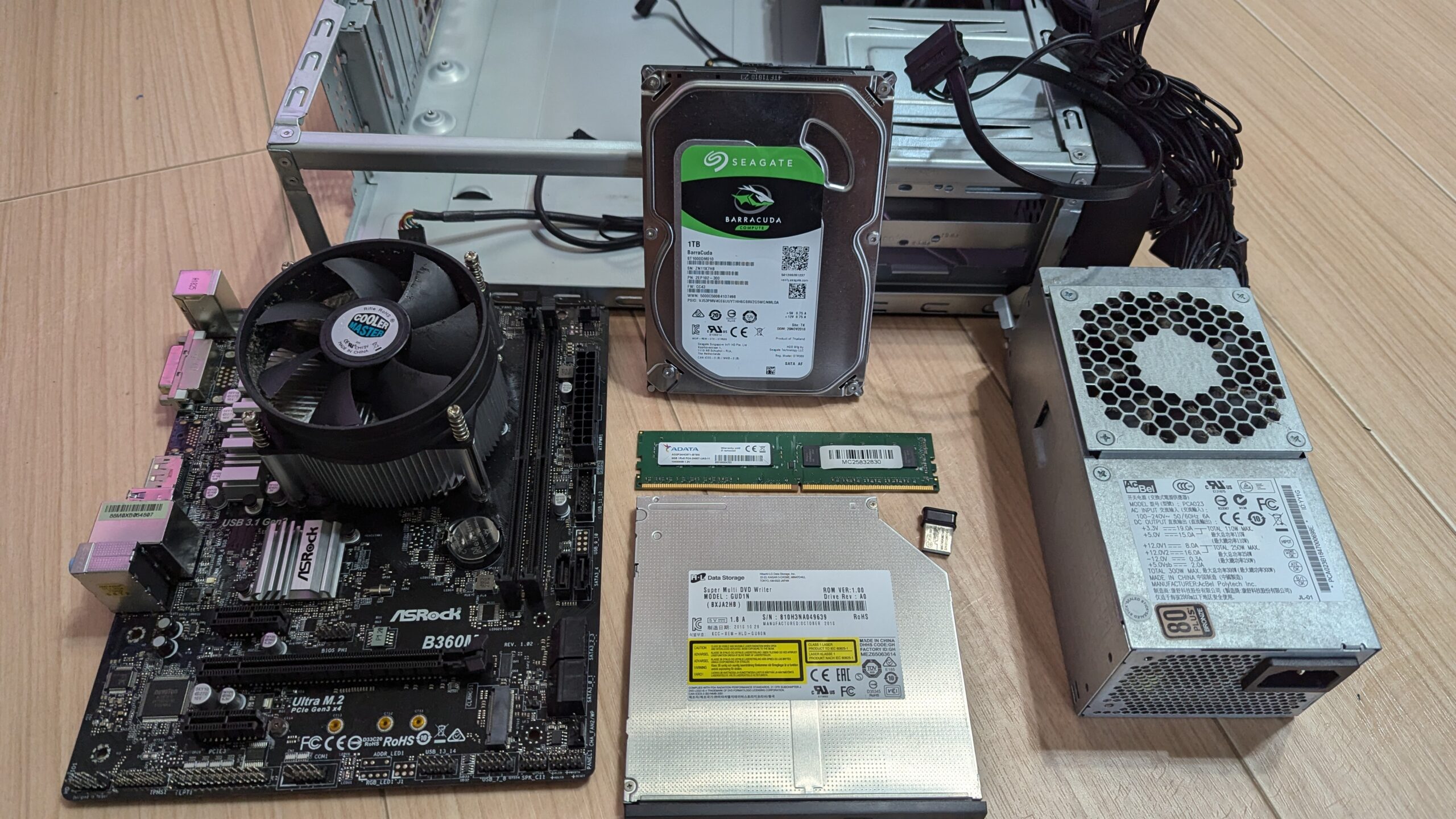 これらマザーボード系一式とは別に、電源ユニットと、ハードディスク系のユニットがあります。パソコンというのは、これらひとつひとつの部品を繋いでいるだけです。