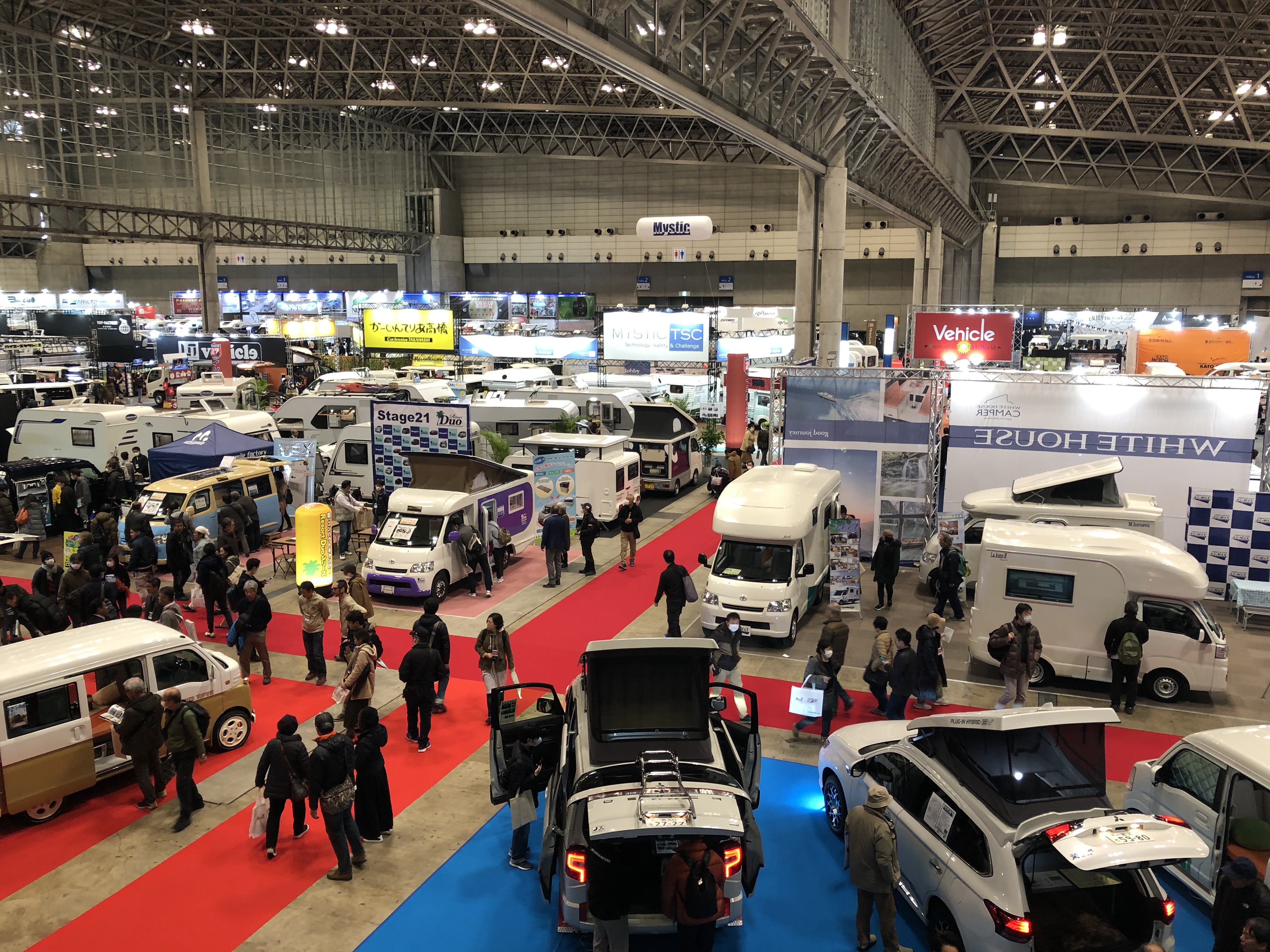 幕張のキャンピングカーショーなんかに行くと、そこに展示されているキャンピングカーはさまざまな小道具、生活備品が設置済みの状態で展示されています。だから魅力的に映るのです。このままの状態で今すぐ車中泊の旅に出かけたくなります。