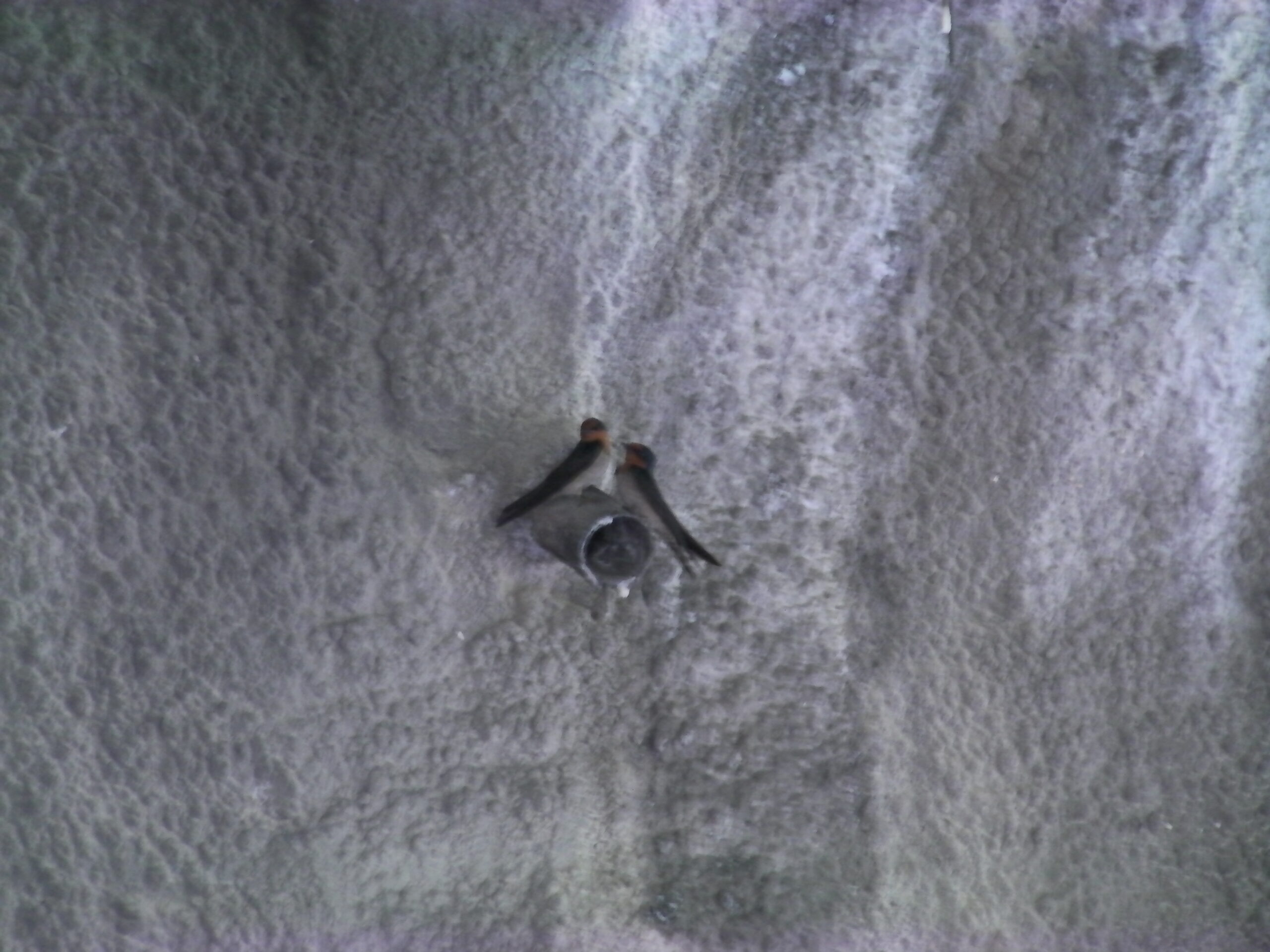 水抜きの穴で愛を交わすツバメたち。